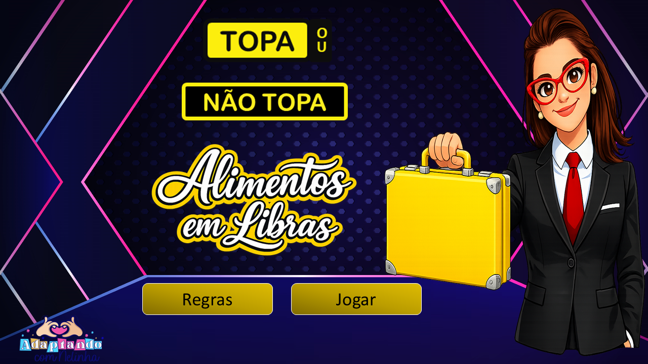 Com o jogo gamificado Topa ou Não Topa – Alimentos em Libras, o aprendizado acontece de forma leve, dinâmica e envolvente!
